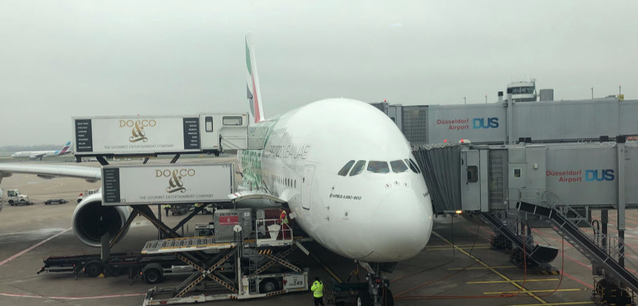 Wir sind in Düsseldorf und können uns schon den Flieger ansehen. Schon groß die Kiste...